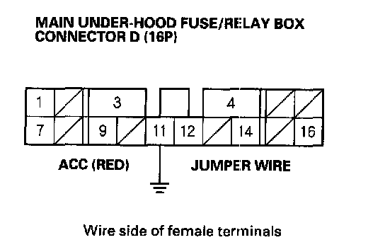 15. Momentarily connect main under-hood fuse/relay box 16P connector terminal No.11 to body ground with a jumper wire several times.