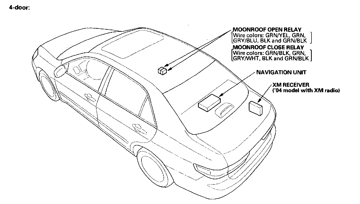 Relay And Control Unit Locations - Roof And Trunk (4-door):