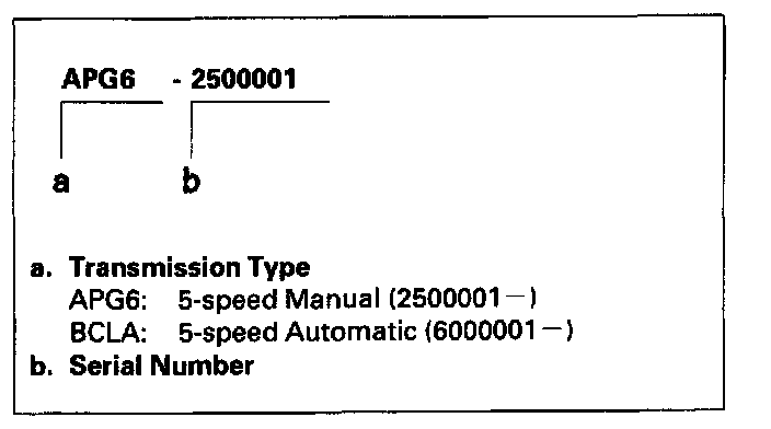 Transmission Number - 2 Door: