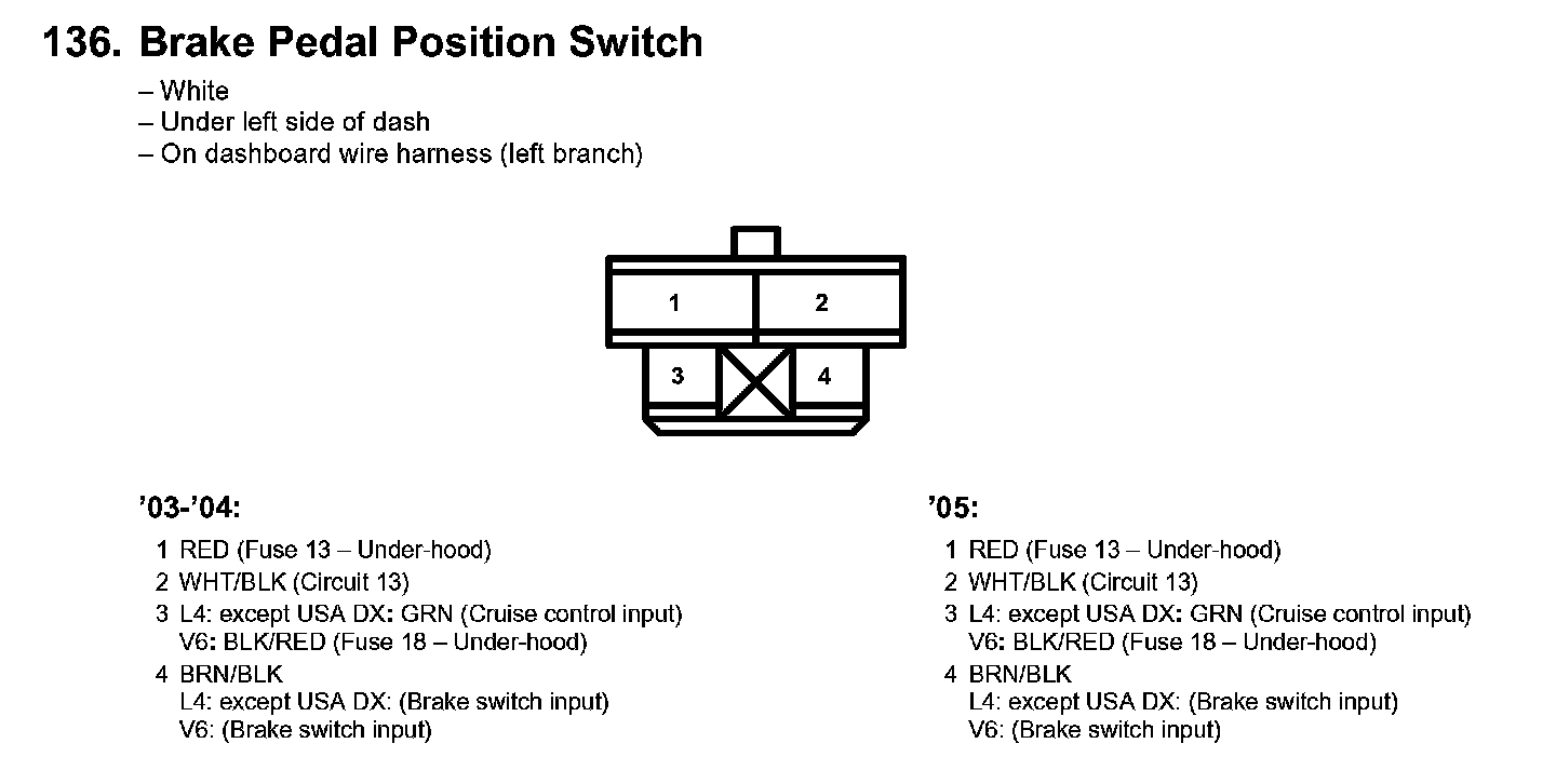136. Brake Pedal Position Switch: