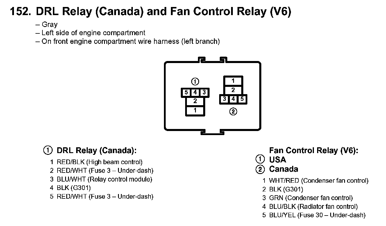 152. DRL Relay (Canada) And Fan Control Relay (V6):
