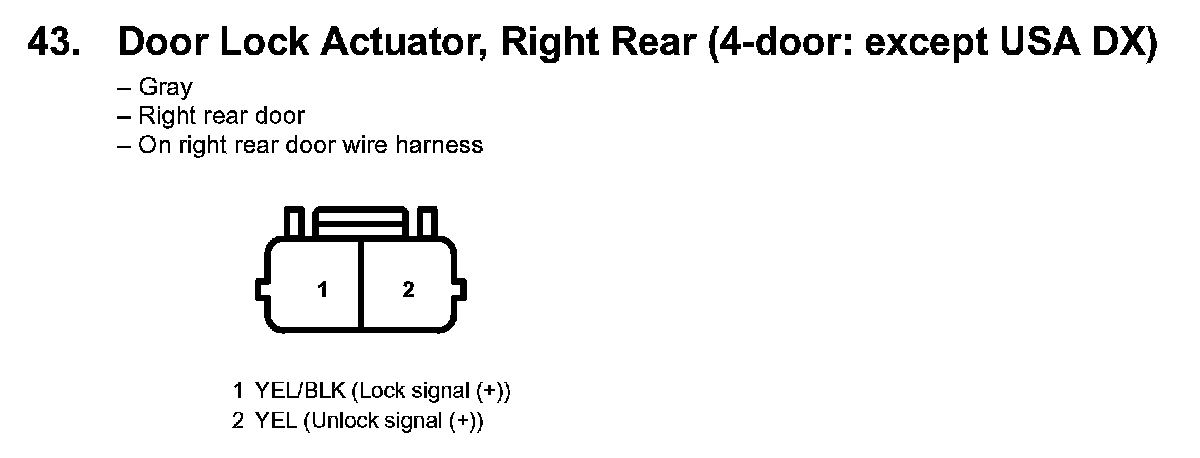 43. Door Lock Actuator, Right Rear (4-door: Except USA DX):