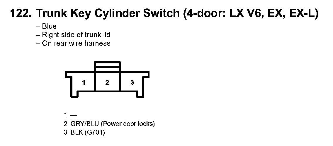 122. Trunk Key Cylinder Switch (4-door: LX V6, EX, EX-L):