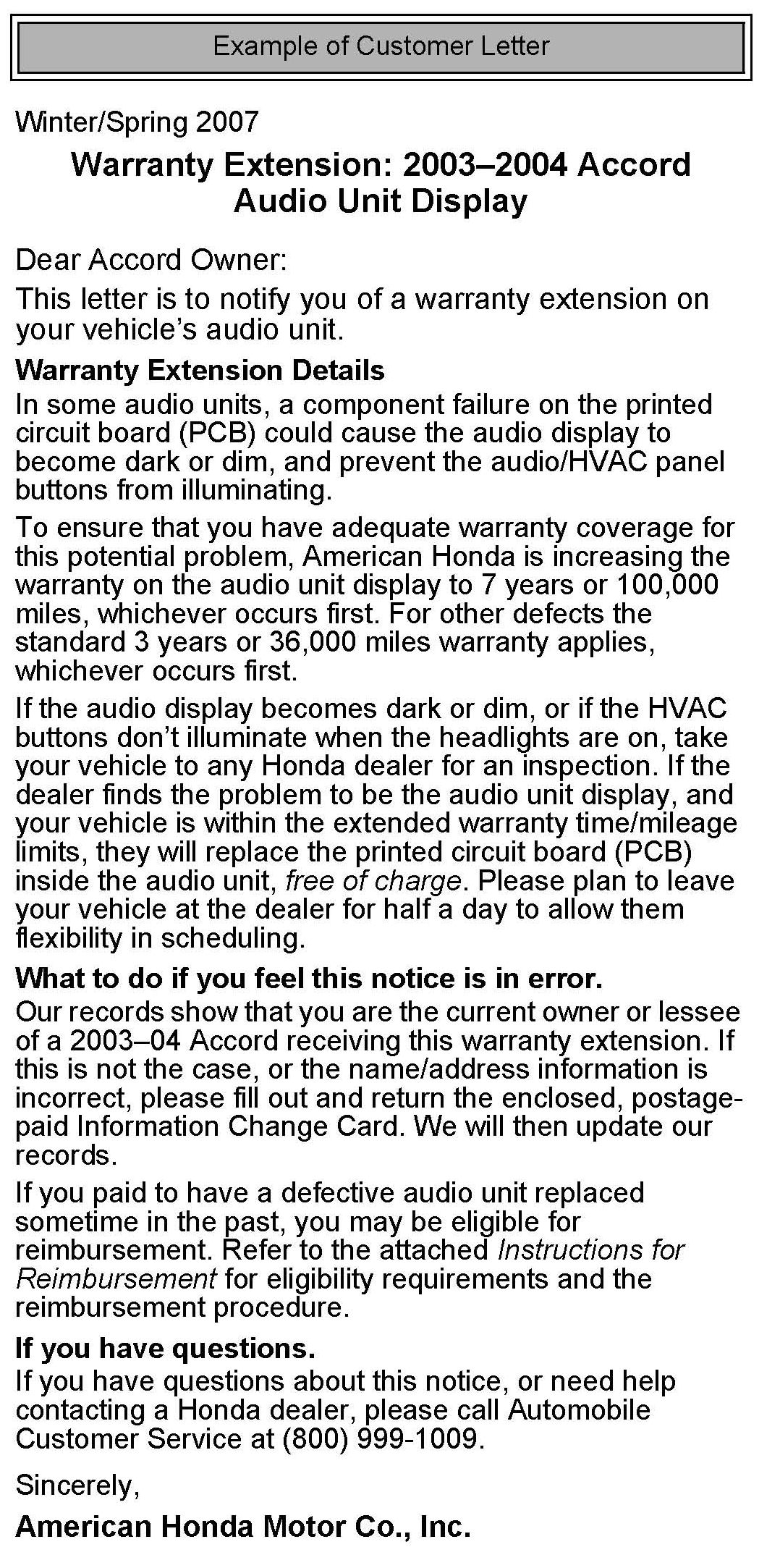Campaign - A/C, Audio Display Warr. Ext/Non-Warr. Repair