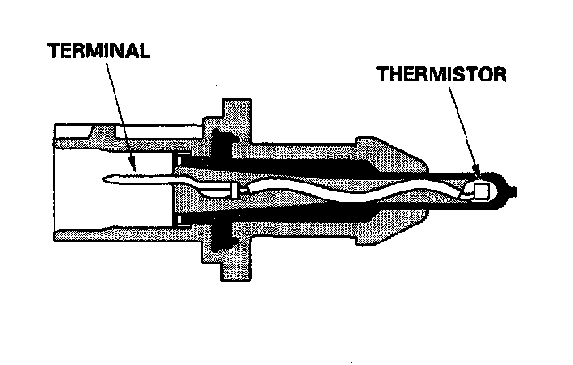 The ECT sensor is a temperature dependent resistor (thermistor). The resistance of the thermistor decreases as the engine coolant temperature increases.