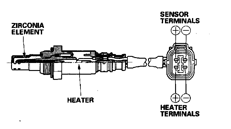 The secondary HO2S detects the oxygen content in the exhaust gas downstream of the three way catalytic converter (TWC), and sends signals to the ECM/PCM which varies the duration of fuel injection accordingly. To stabilize its output, the sensor has an internal heater. The ECM/PCM compares the HO2S output with the A/F sensor output to determine catalyst efficiency. The secondary HO2S is on the TWC.