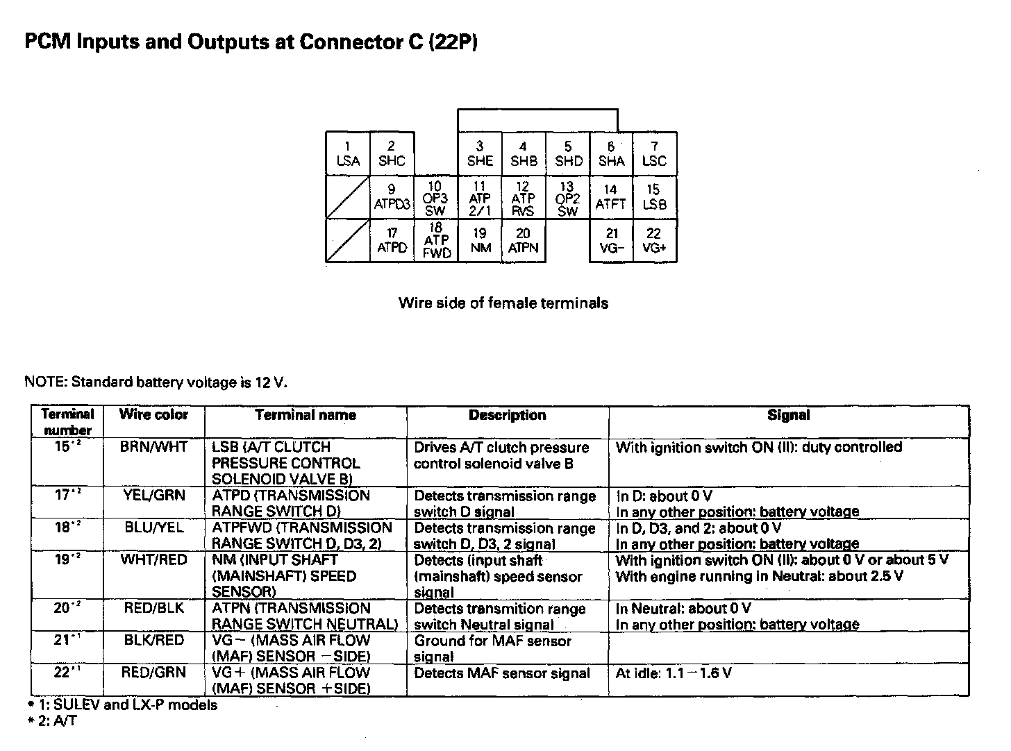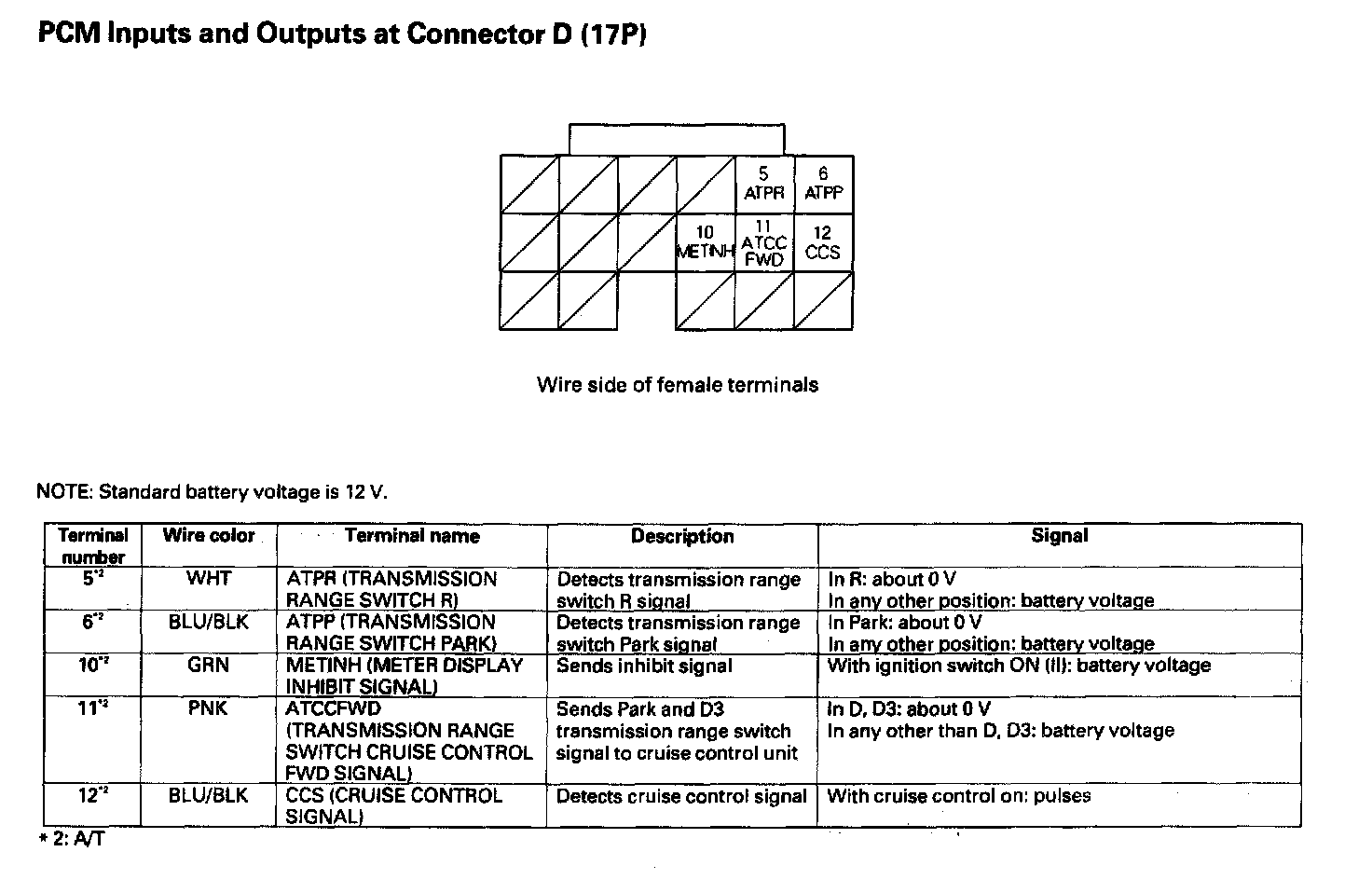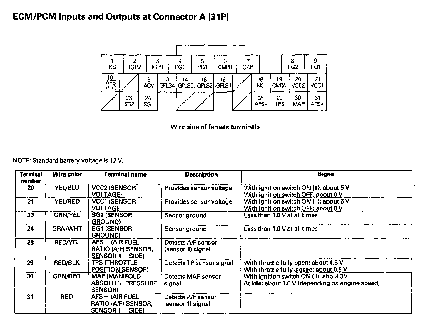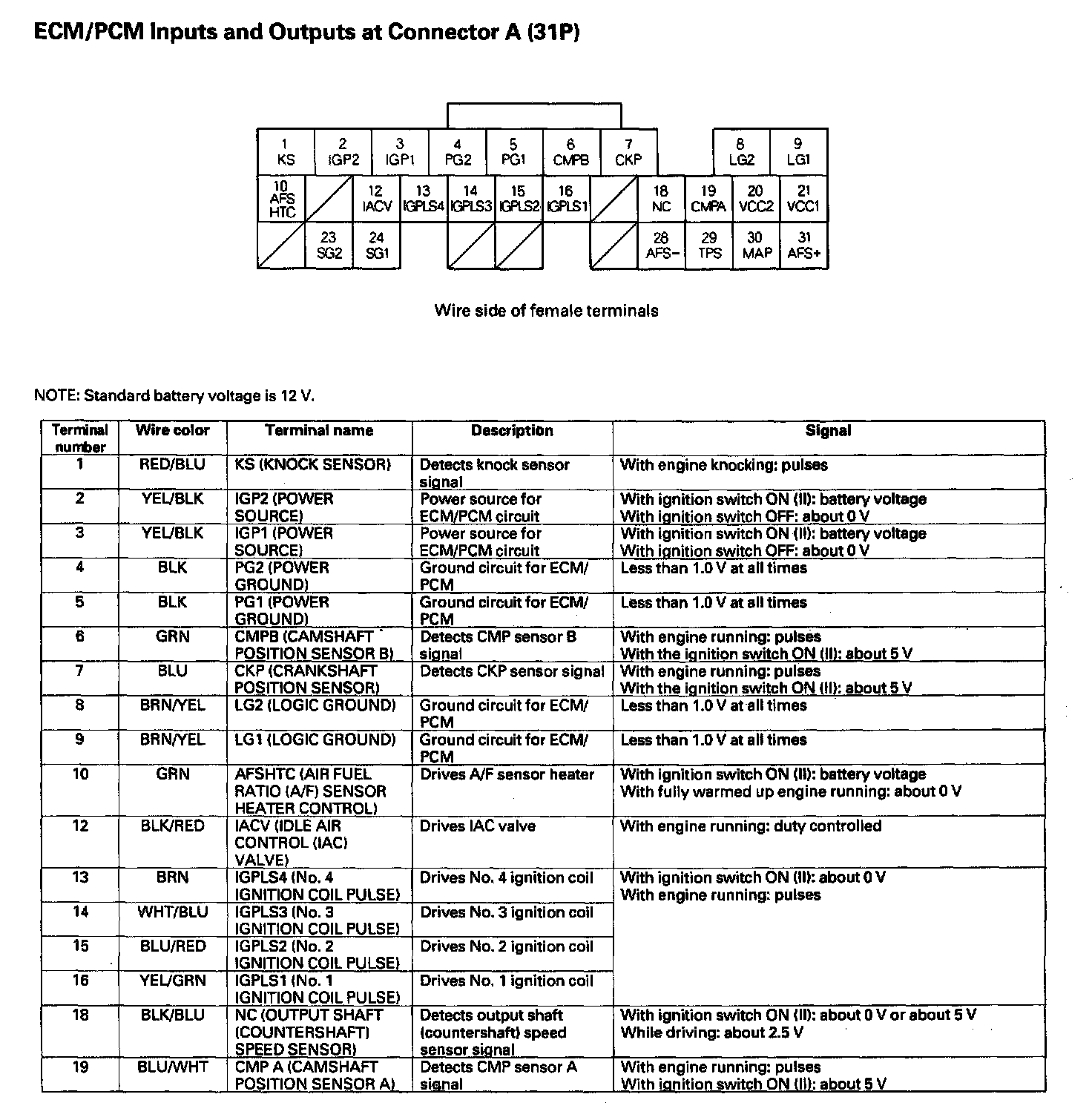 ECM/PCM Inputs And Outputs At Connector A (31P):