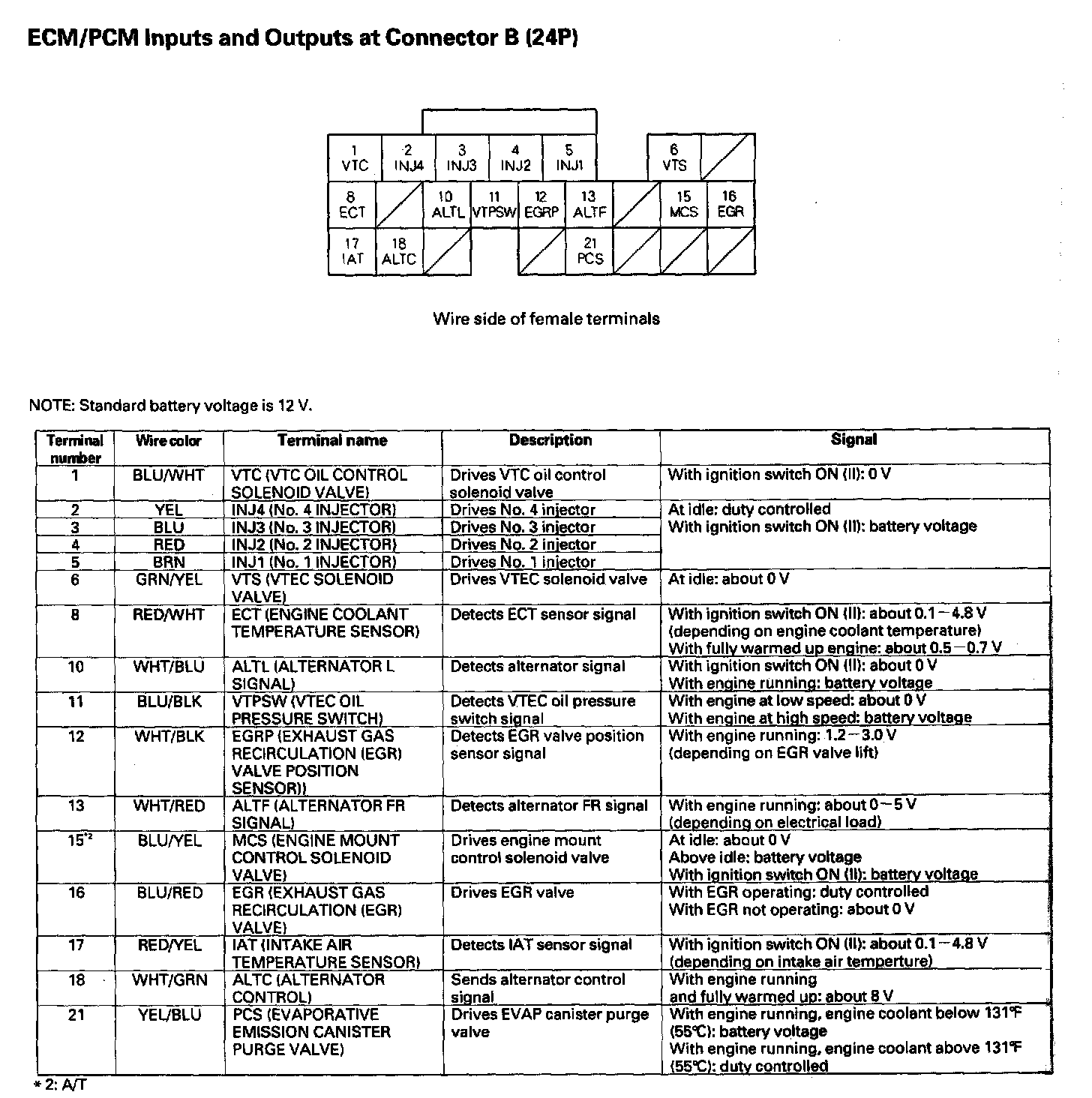 ECM/PCM Inputs And Outputs At Connector B (24P):