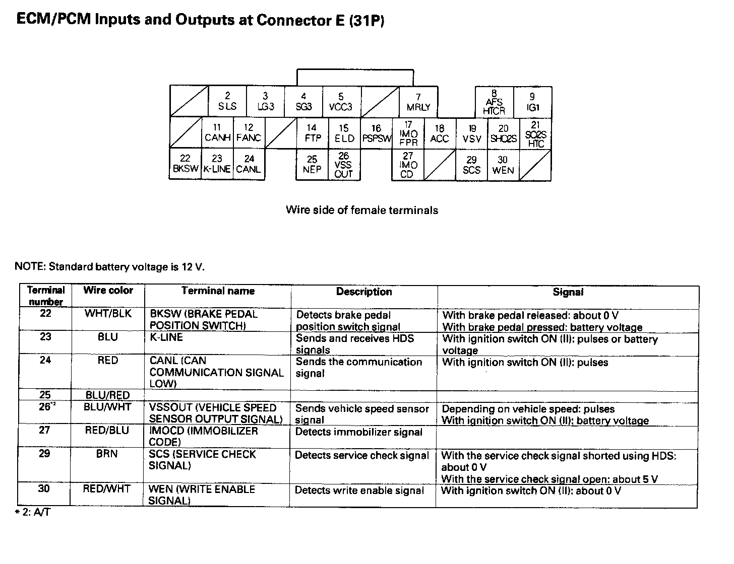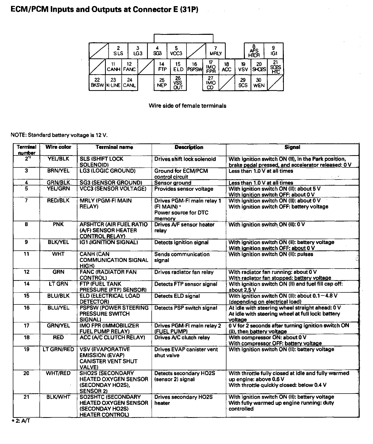 ECM/PCM Inputs And Outputs At Connector E (31P):