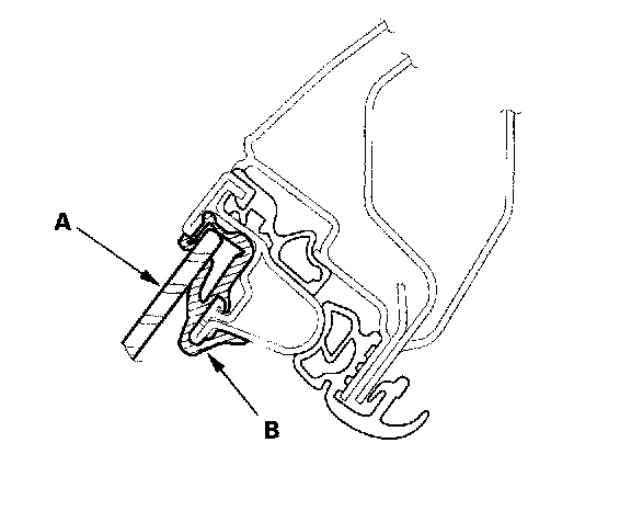 6. Raise the glass fully, and check for gaps. Also check that the glass (A) contacts the glass run channel (B) evenly.