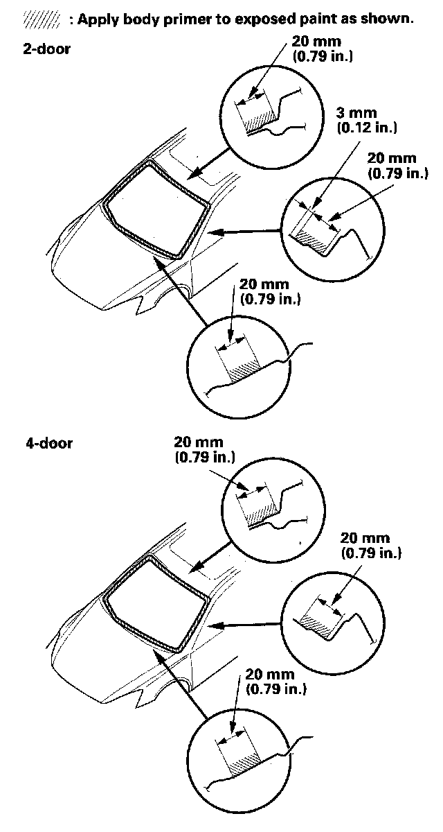 - Do not apply body primer to the windshield, and do not get body and glass primer sponges mixed up.