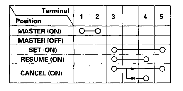 - If there is continuity, and it matches the table, but switch failure occurred on the cruise control unit input test check and repair the wire harness on the switch circuit.
