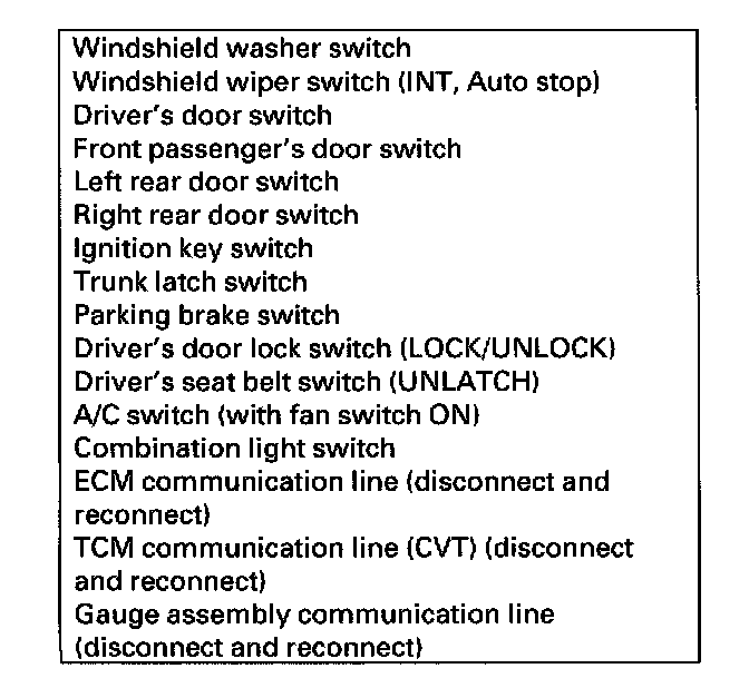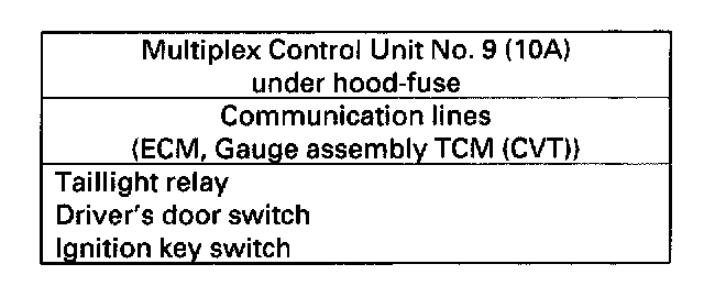 1. Check the No.9 (10 A) fuse in the under-hood fuse/relay box and the No.10 (7.5 A) fuse in the under-dash fuse/relay box.