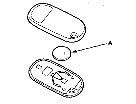 3. Replace the transmitter battery (A) with a new one, and try to lock and unlock the doors with the transmitter by pressing the lock or unlock button five or six times.