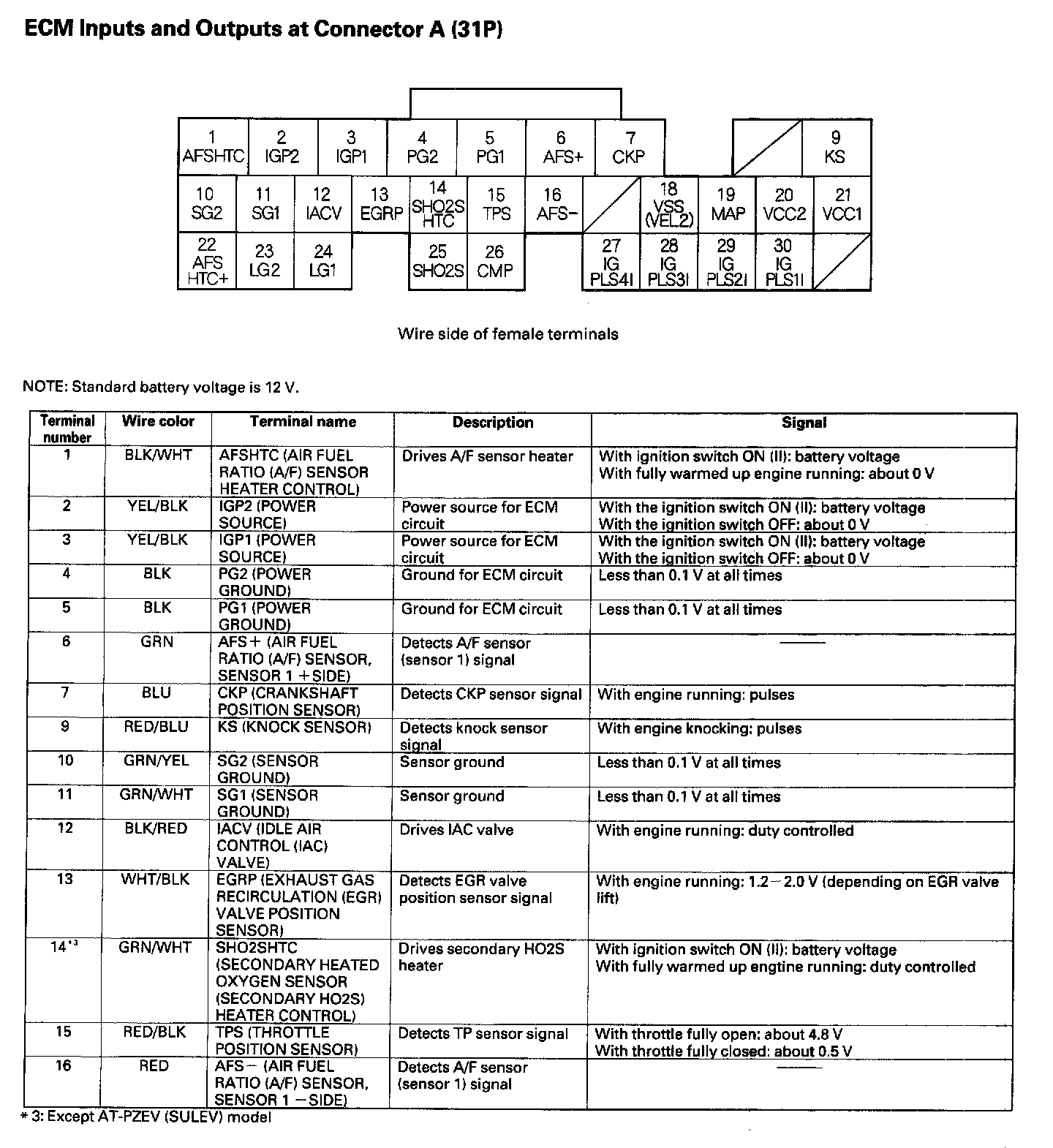 ECM Inputs And Outputs At Connector A (31P) Part 1: