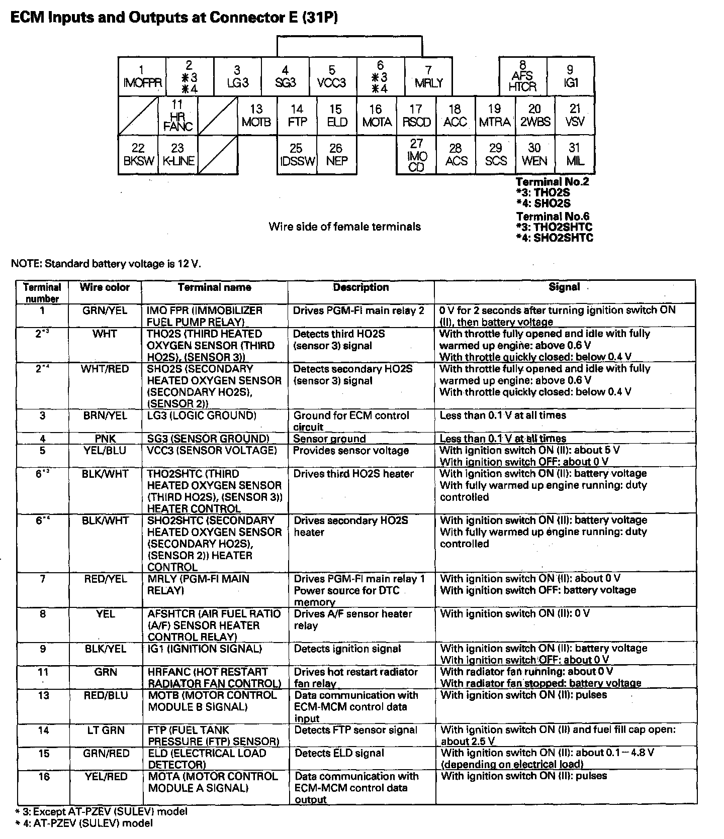 ECM Inputs And Outputs At Connector A (31P) Part 2: