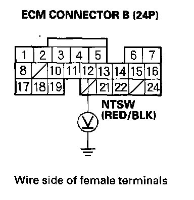 5. Measure voltage between ECM connector terminal B12 and body ground.