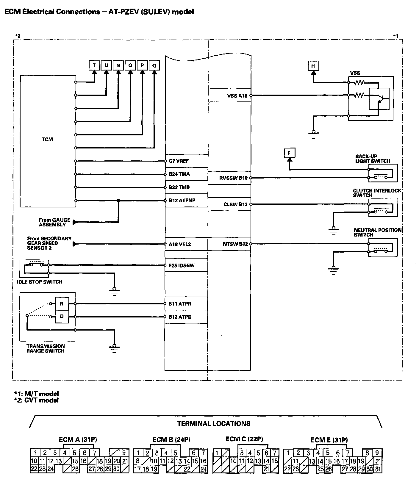 ECM Electrical Connections Part 1 (AT-PZEV (SULEV) Model):