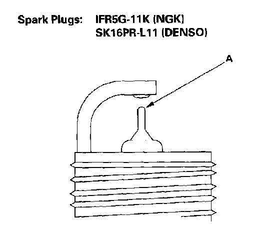 2. Do not adjust the gap of iridium tip plugs (A) replace the spark plug if the gap is out of specification.