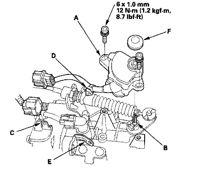 12. Install the control shaft cover (F).