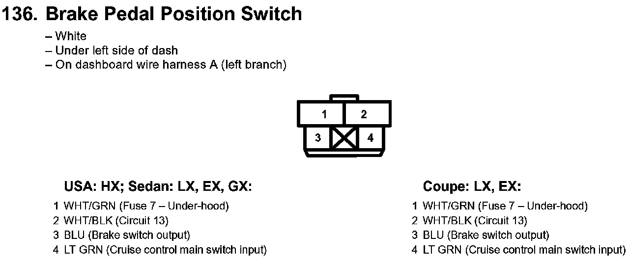 136. Brake Pedal Position Switch: