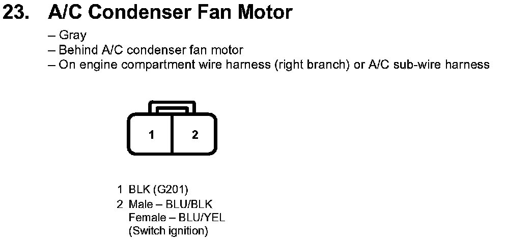 23. A/C Condenser Fan Motor: