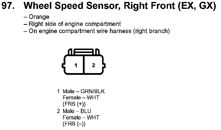 97. Wheel Speed Sensor, Right Front (EX, GX):