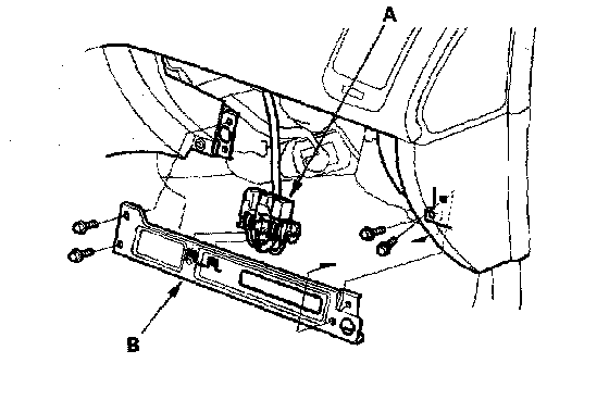 4. Remove the relays (A), then remove the bolts and the glove box frame (B).