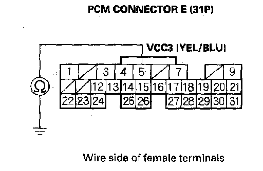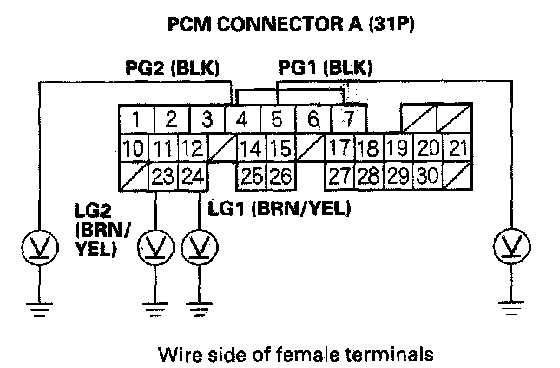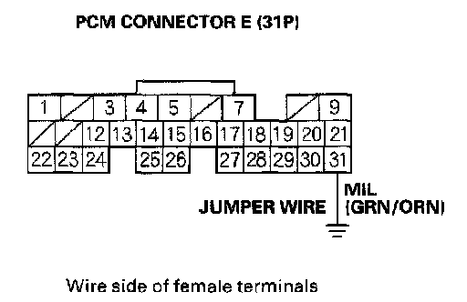 12. Connect PCM connector terminal E31 to body ground with a jumper wire.