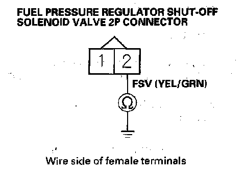 31. Check for continuity between fuel pressure regulator shut-off solenoid valve 2P connector terminal No.2 and body ground.
