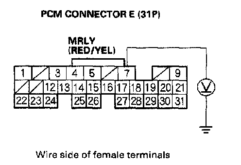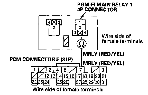 NO - Repair open in the wire between PGM-FI main relay 1 and the PCM (E7).