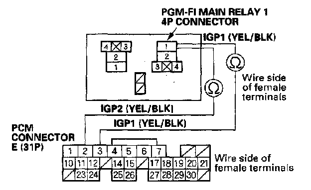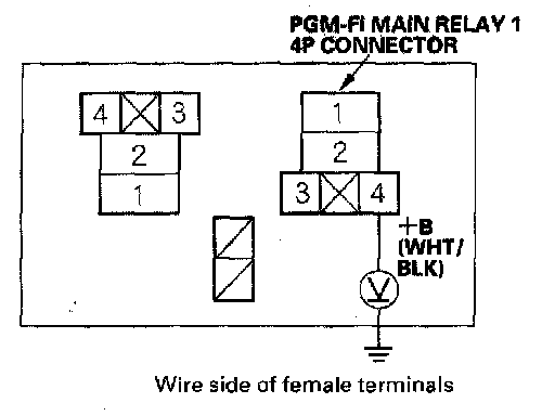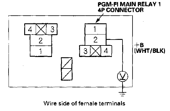 21. Check for continuity between PGM-FI main relay 1 4P connector terminal No.1 and body ground.