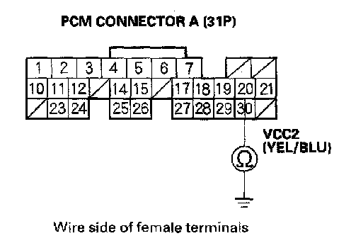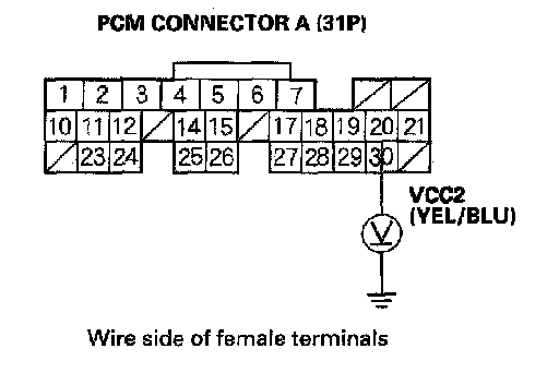 NO - Repair open in the wire between PGM-FI main relay 1 and the PCM (A2, A3).
