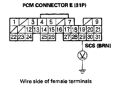 79. Measure voltage between PCM connector terminal E29 and body ground.