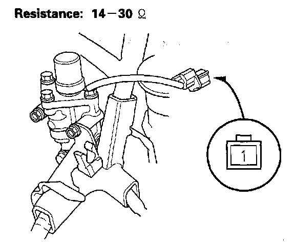 3. Measure resistance between the VTEC solenoid valve 1P connector terminal No. 1 and body ground.