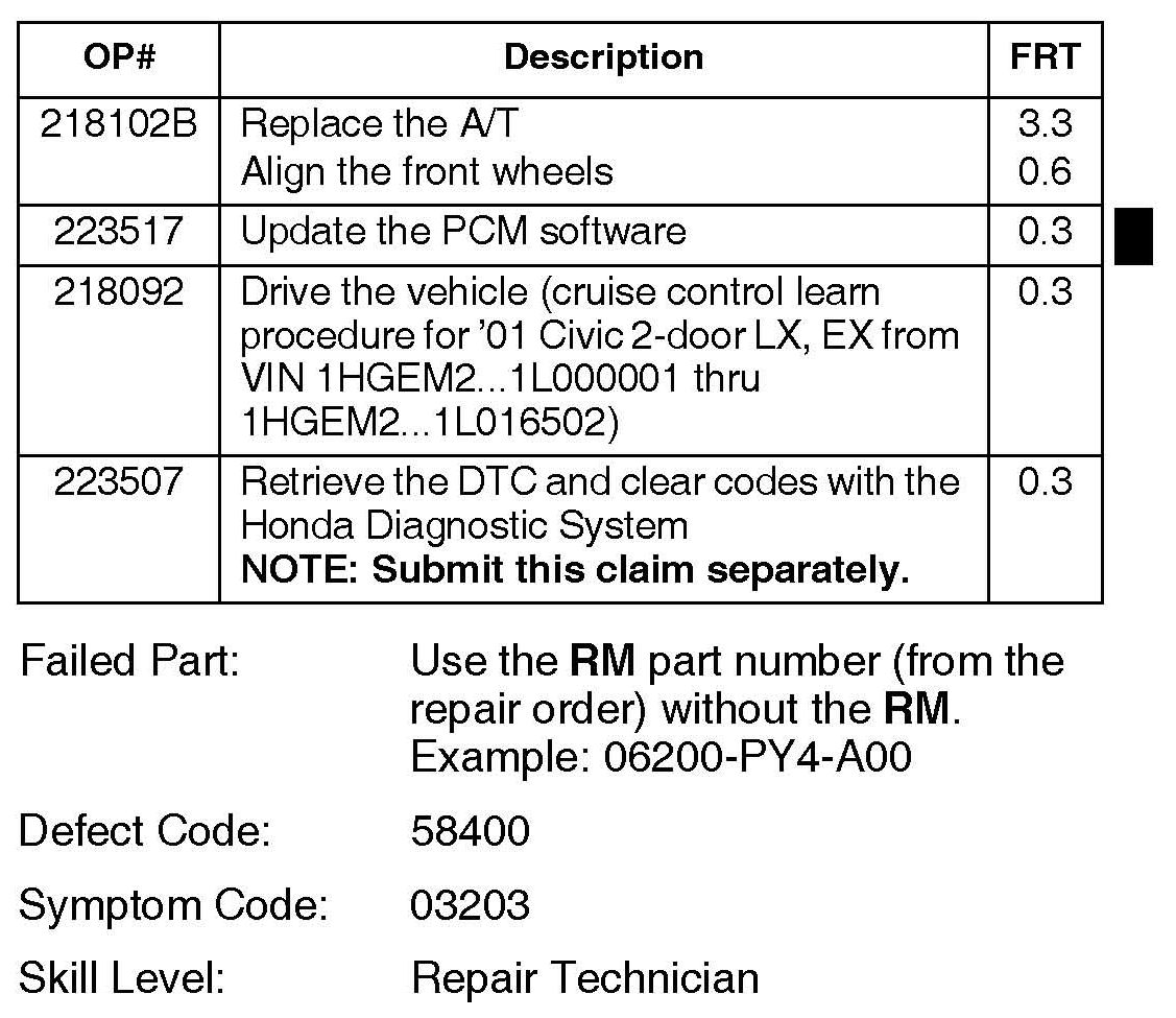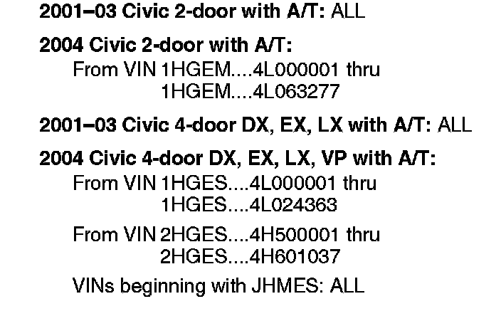 *Replace the A/T. Update the PGM software ('01-03 models only).*