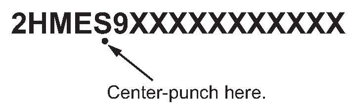 2. Center-punch a completion mark below the fifth character of the engine compartment VIN: