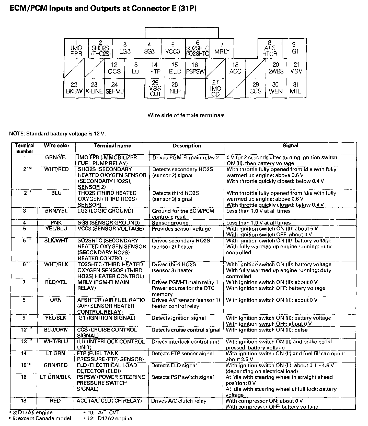 ECM/PCM Inputs And Outputs at Connector E (31P) Part 1: