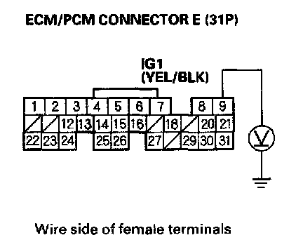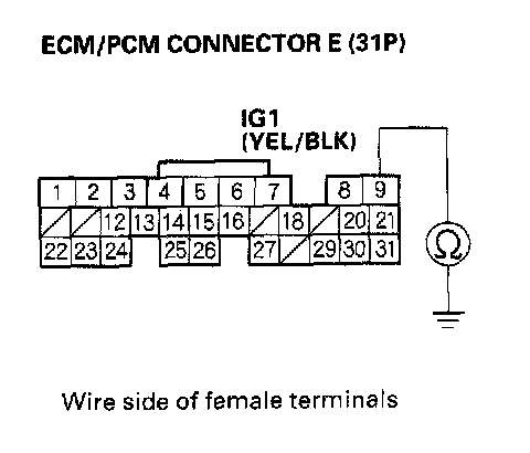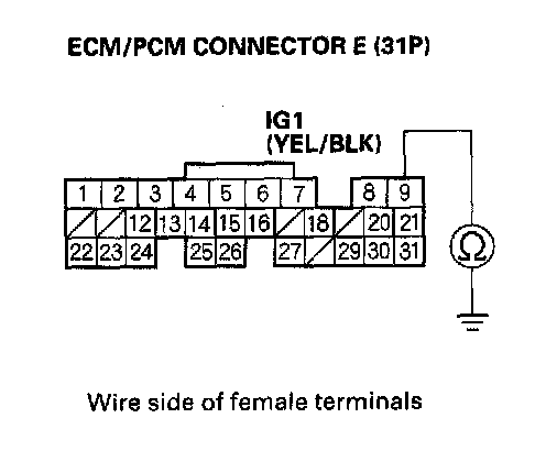 25. Check for continuity between ECM/PCM connector terminal E9 and body ground.