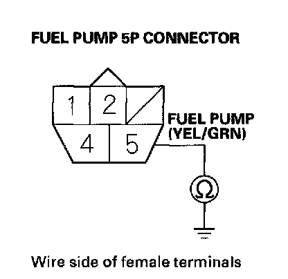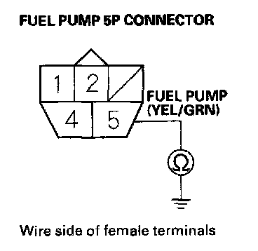 31. Check for continuity between fuel pump 5P connector terminal No. 5 and body ground.