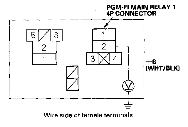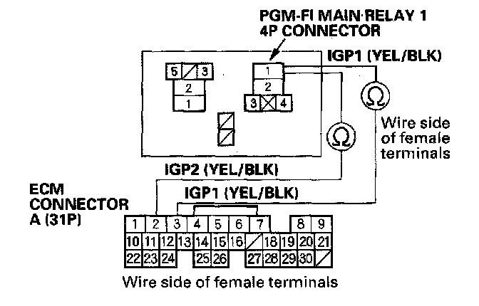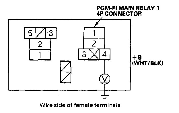 21. Check for continuity between PGM-FI main relay 1 4P connector terminal No. 1 and body ground.
