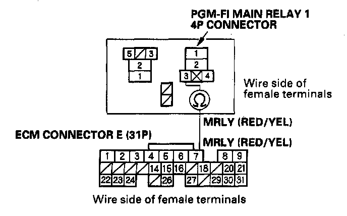 NO - Repair open in the wire between PGM-FI main relay 1 and the ECM/PCM (E7).