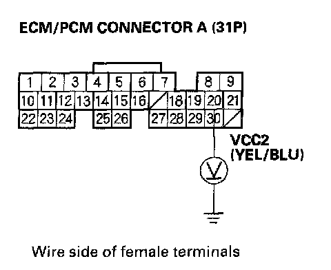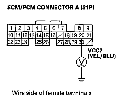 61. Disconnect the 3P connector from each of these sensors, one at a time, and measure voltage between body ground and ECM/PCM connector terminal A20 with the ignition switch ON (II).