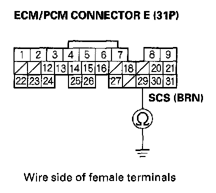 27. Check for continuity between ECM/PCM connector terminal E9 and body ground.