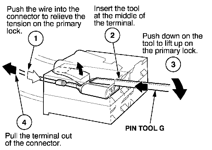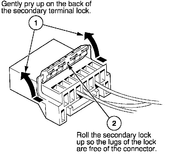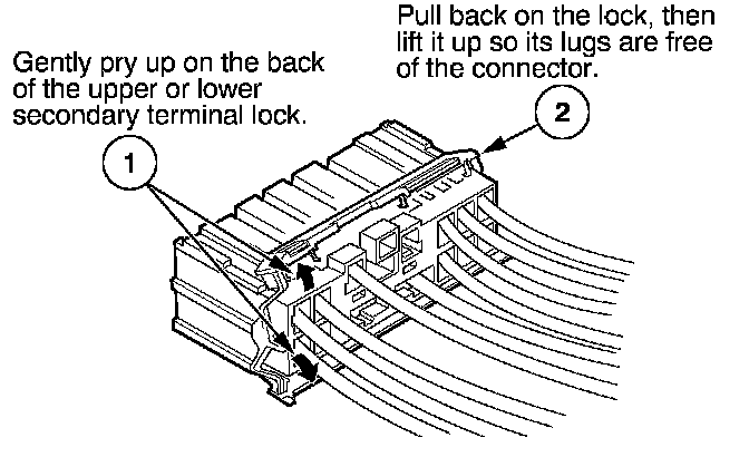 - If it has a secondary terminal lock, go to Connectors With a Secondary Lock. A secondary lock, found on most connectors on some models, is an additional locking device on the connector housing as a backup for the primary lock on the terminal.