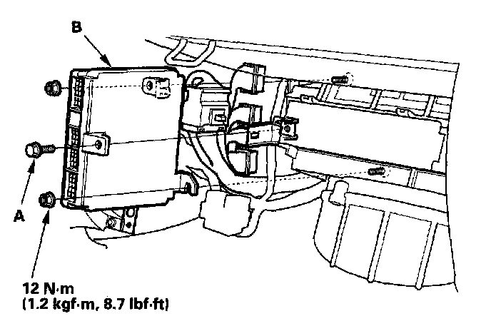 5. Remove the nuts, then remove the ECM/PCM (B).