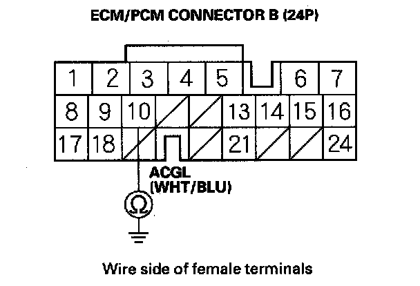 11. Check for continuity between ECM/PCM connector terminal B10 and body ground.