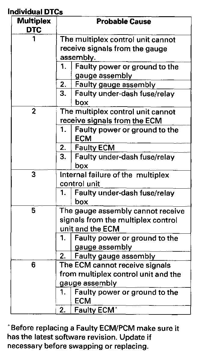 4. If all inputs were confirmed, or multiple circuits failed at the same time in Mode 2, go to the multiplex sleep mode test. If a single switch fails in Mode 2, troubleshoot its circuit.