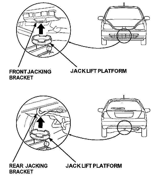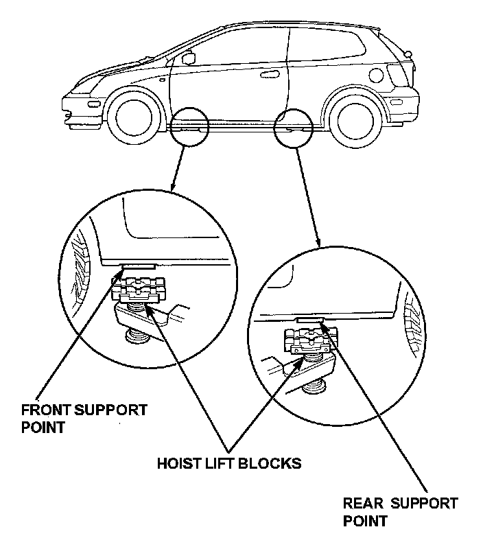 1. Position the hoist lift blocks, or safety stands, under the vehicle's front support points and rear support points.