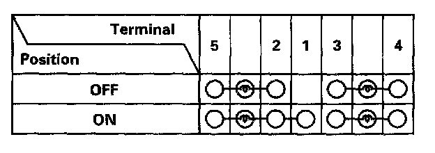 3. Check for continuity between the terminals in each switch position according to the table. If the continuity is not as specified, replace illumination bulbs (C) or the switch.